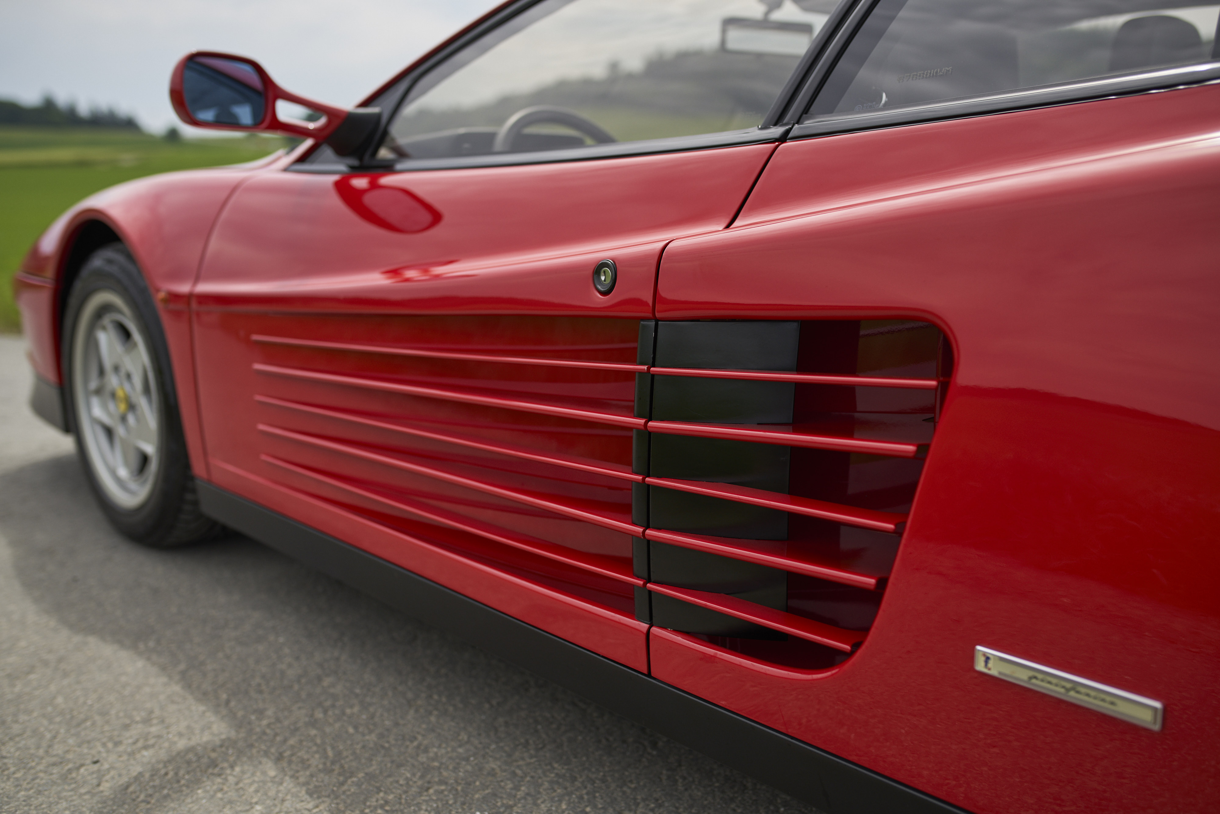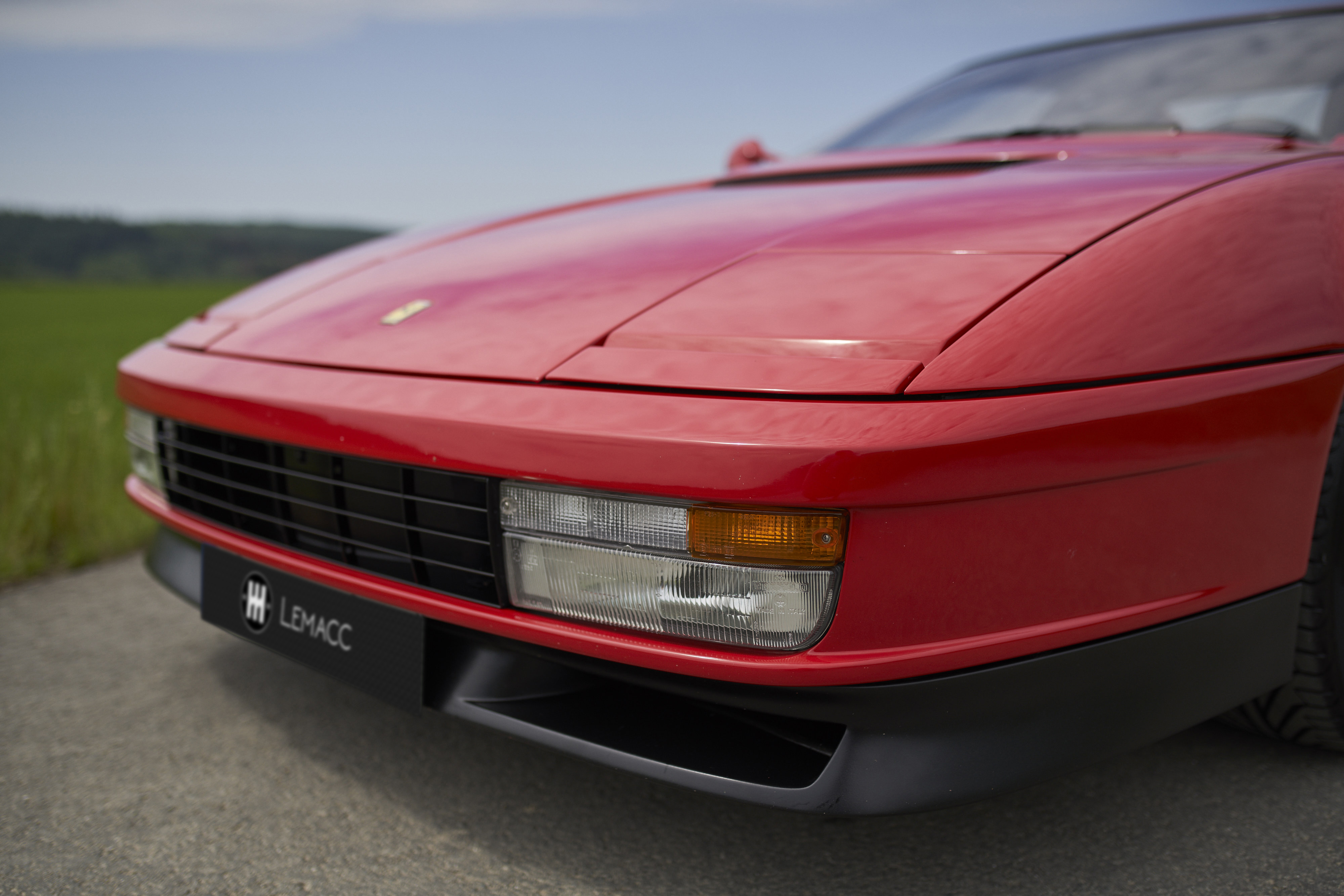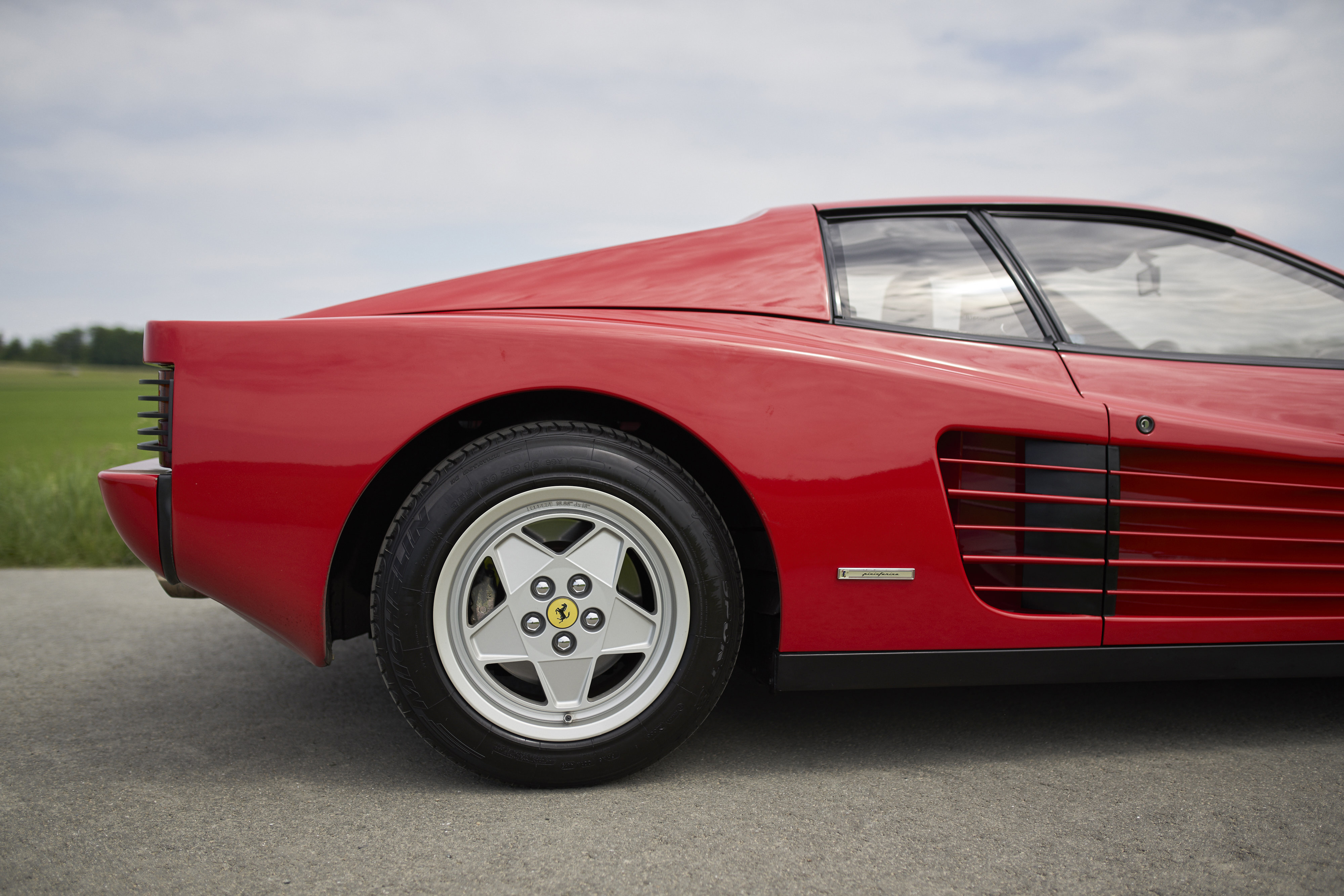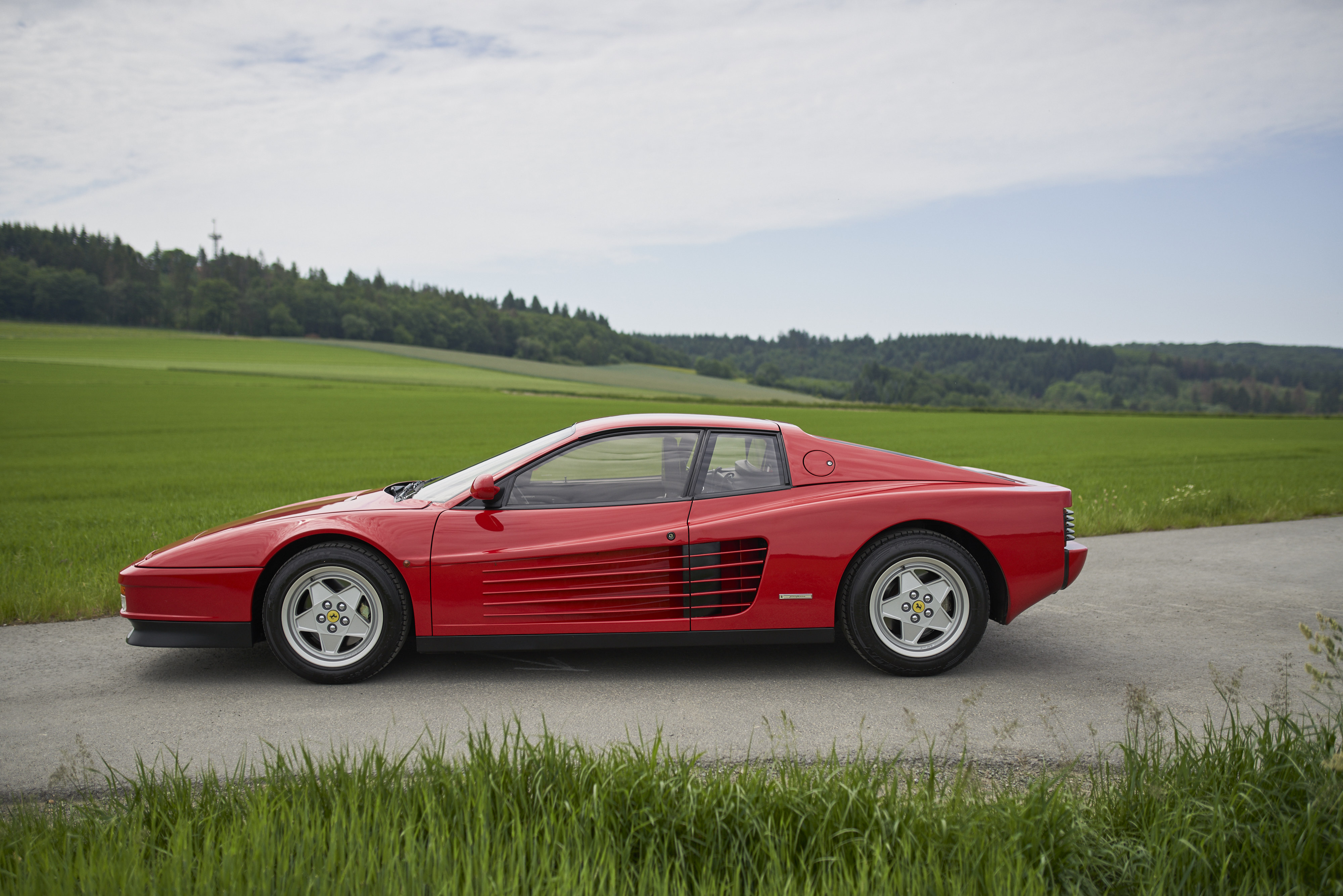 The Ferrari Testarossa with the VIN *ZFFAA17B000087658* was bought on 20th December 1990 thru the Ferrari dealer E. and Th. Wichelhausen from Hamburg / Germany by an owner community as a new car and collector object and certified. The colour combination is rosso corsa - nero. Until the turn of the millennium, the car remained in the private car collection of the owners' association and was regularly moved in order to avoid damage to its condition. During the warranty period, maintenance was carried out at the authorized Ferrari dealership in Hamburg. Afterwards most service work was carried out by the own highly qualified mechanic, who takes care of the remaining vehicles of the collection. In the year 2000 the owner community was dissolved, and the vehicle was completely transferred to the then co-owner (all provable). Invoices from Ferrari authorized workshops are available. The last maintenance was carried out in April 2019 by a workshop specialized in Ferrari. The current mileage is 18,250 km and can be documented. The overall condition can be described as excellent. The original paint is in very good condition, the interior is original and shows no signs of wear. The leather pouch with the owner’s manual, service booklet, tool kit, jack bag and 2x keys and the new car invoice at that time is present. The original, unused 6-piece Schedoni Testarossa luggage set is in black leather and included with the purchase of the vehicle.
