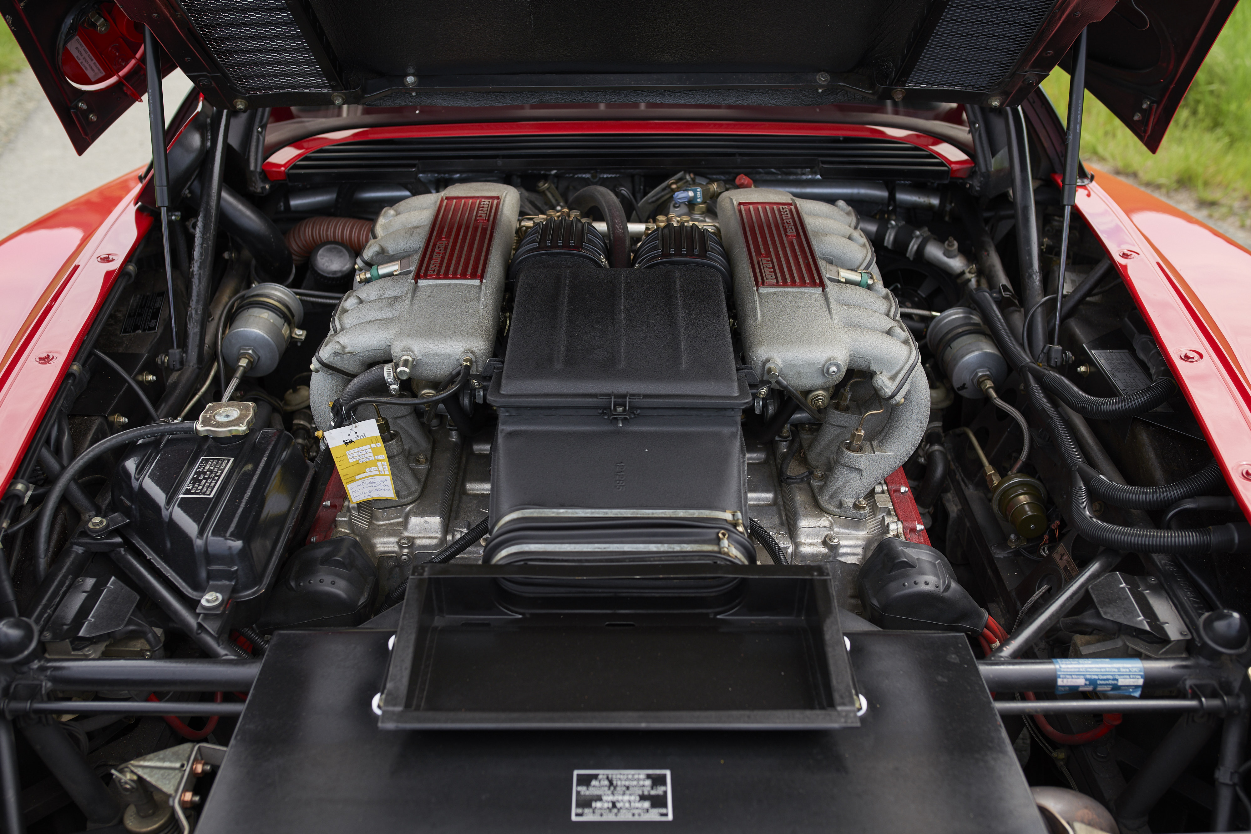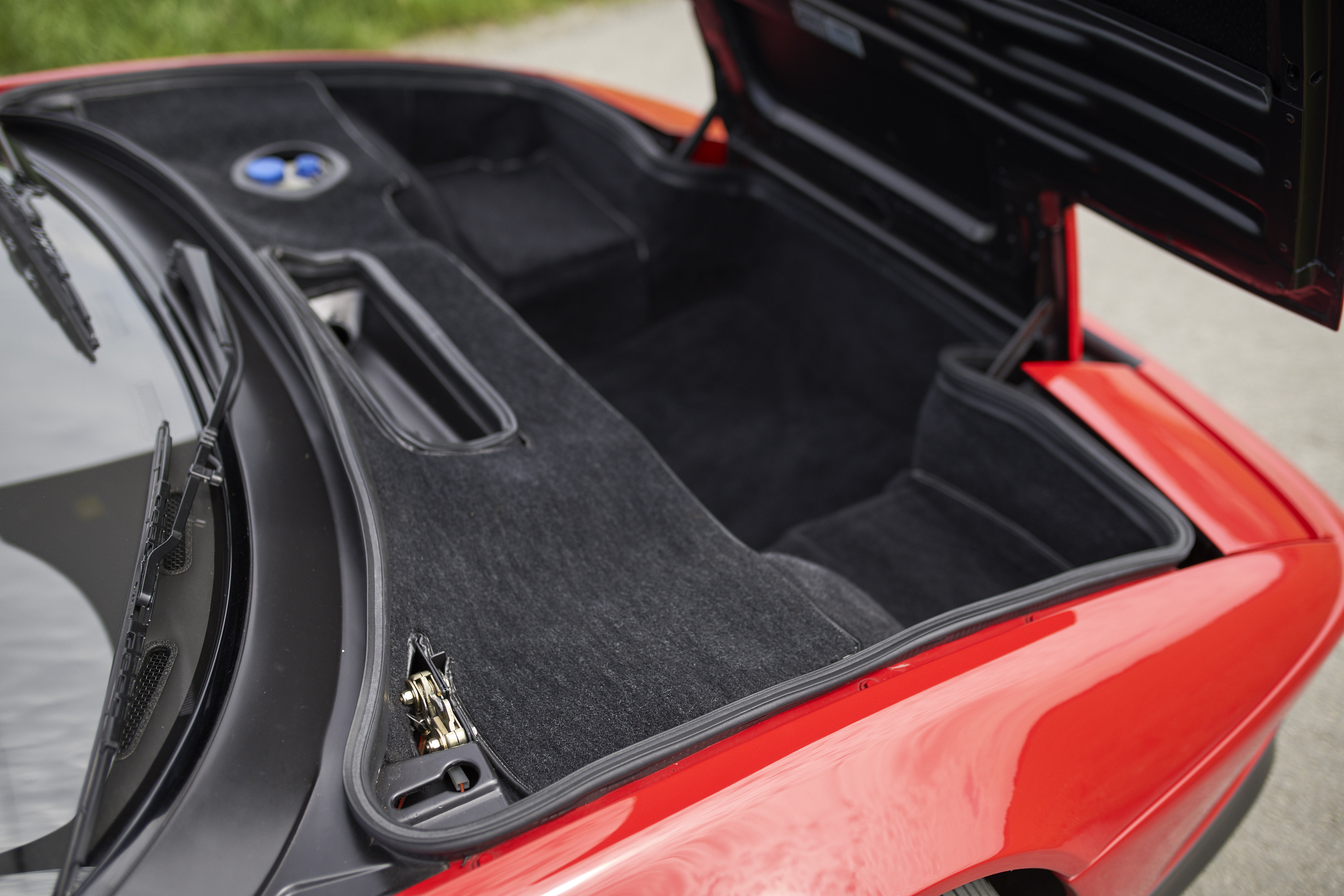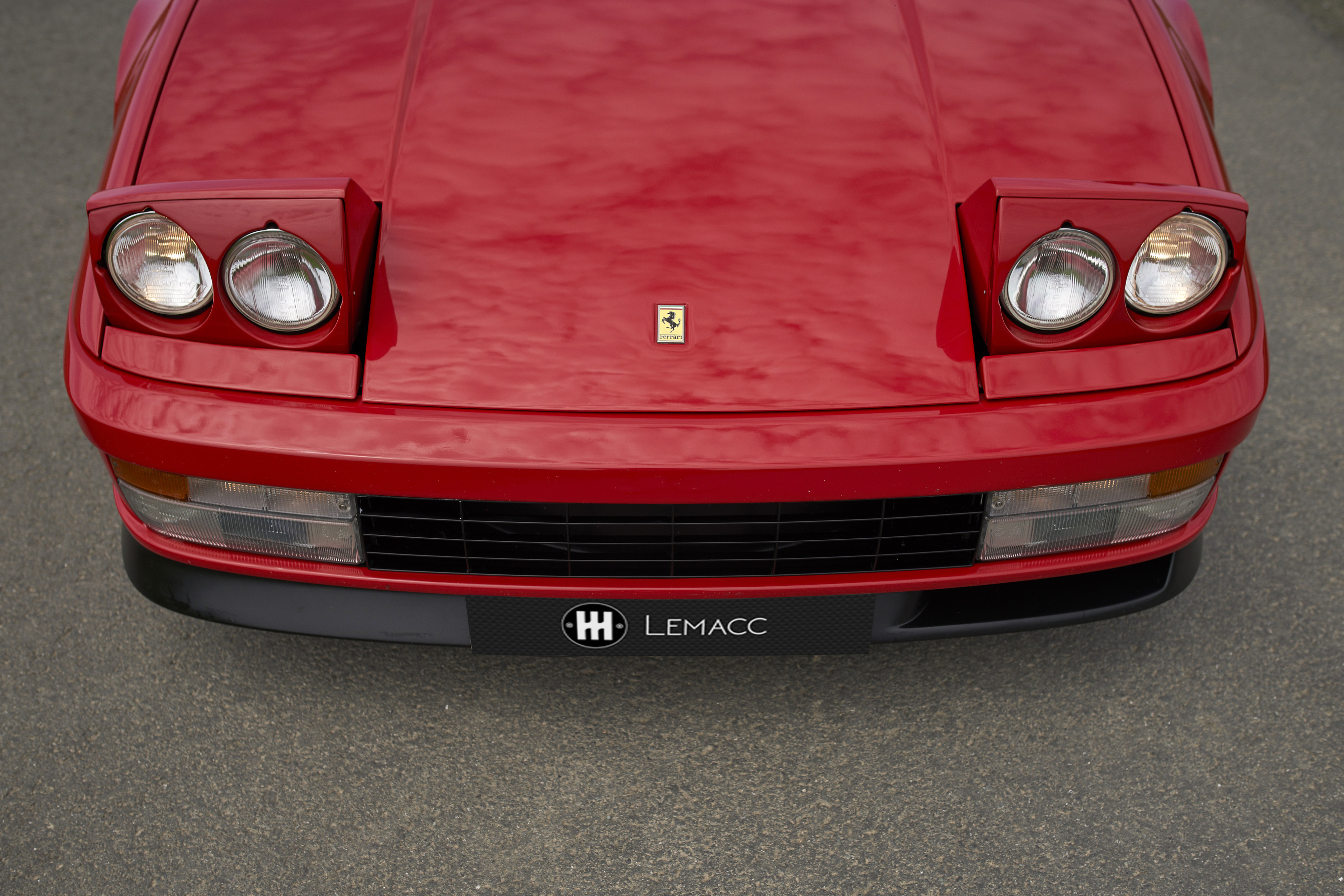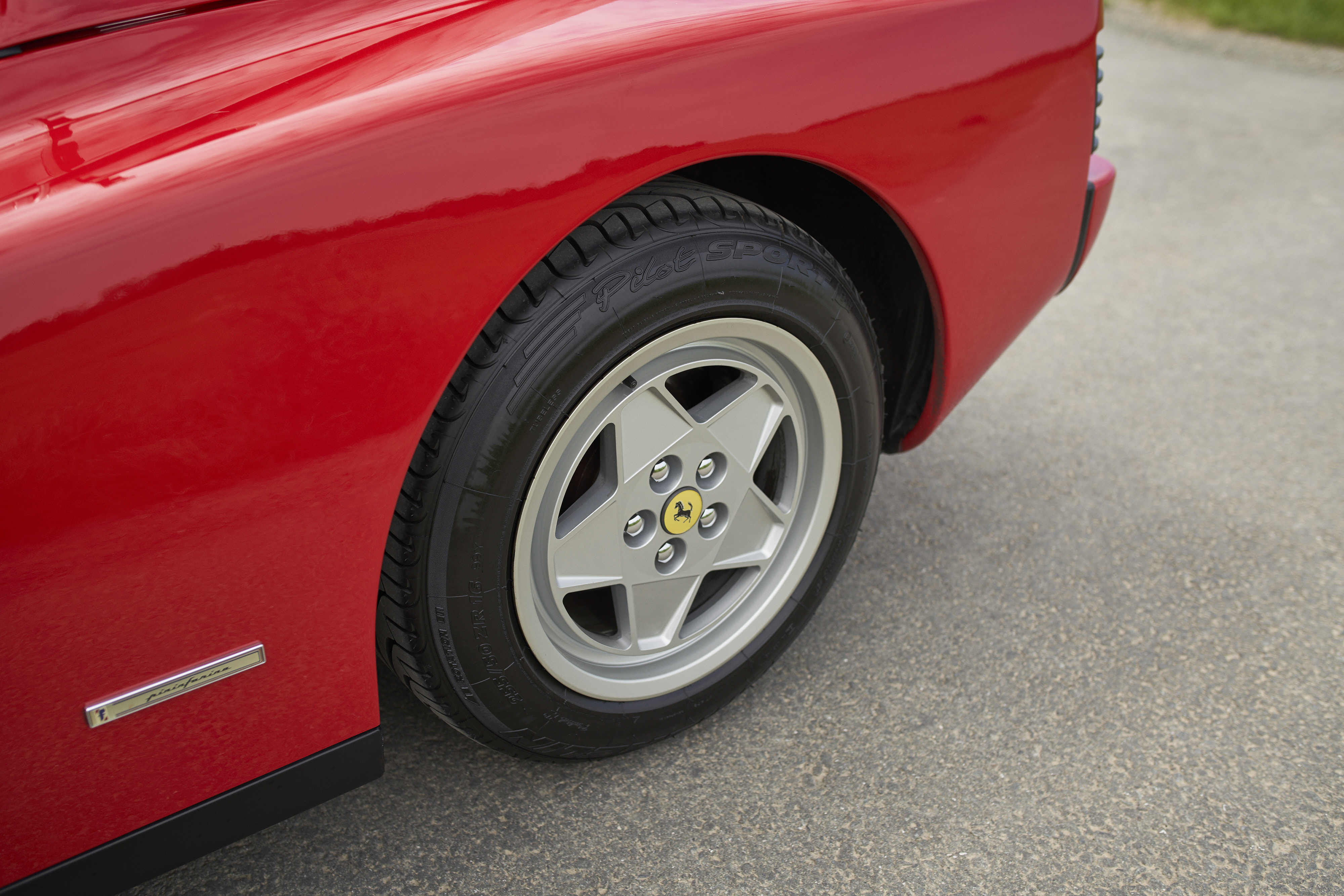 The Ferrari Testarossa with the VIN *ZFFAA17B000087658* was bought on 20th December 1990 thru the Ferrari dealer E. and Th. Wichelhausen from Hamburg / Germany by an owner community as a new car and collector object and certified. The colour combination is rosso corsa - nero. Until the turn of the millennium, the car remained in the private car collection of the owners' association and was regularly moved in order to avoid damage to its condition. During the warranty period, maintenance was carried out at the authorized Ferrari dealership in Hamburg. Afterwards most service work was carried out by the own highly qualified mechanic, who takes care of the remaining vehicles of the collection. In the year 2000 the owner community was dissolved, and the vehicle was completely transferred to the then co-owner (all provable). Invoices from Ferrari authorized workshops are available. The last maintenance was carried out in April 2019 by a workshop specialized in Ferrari. The current mileage is 18,250 km and can be documented. The overall condition can be described as excellent. The original paint is in very good condition, the interior is original and shows no signs of wear. The leather pouch with the owner’s manual, service booklet, tool kit, jack bag and 2x keys and the new car invoice at that time is present. The original, unused 6-piece Schedoni Testarossa luggage set is in black leather and included with the purchase of the vehicle.