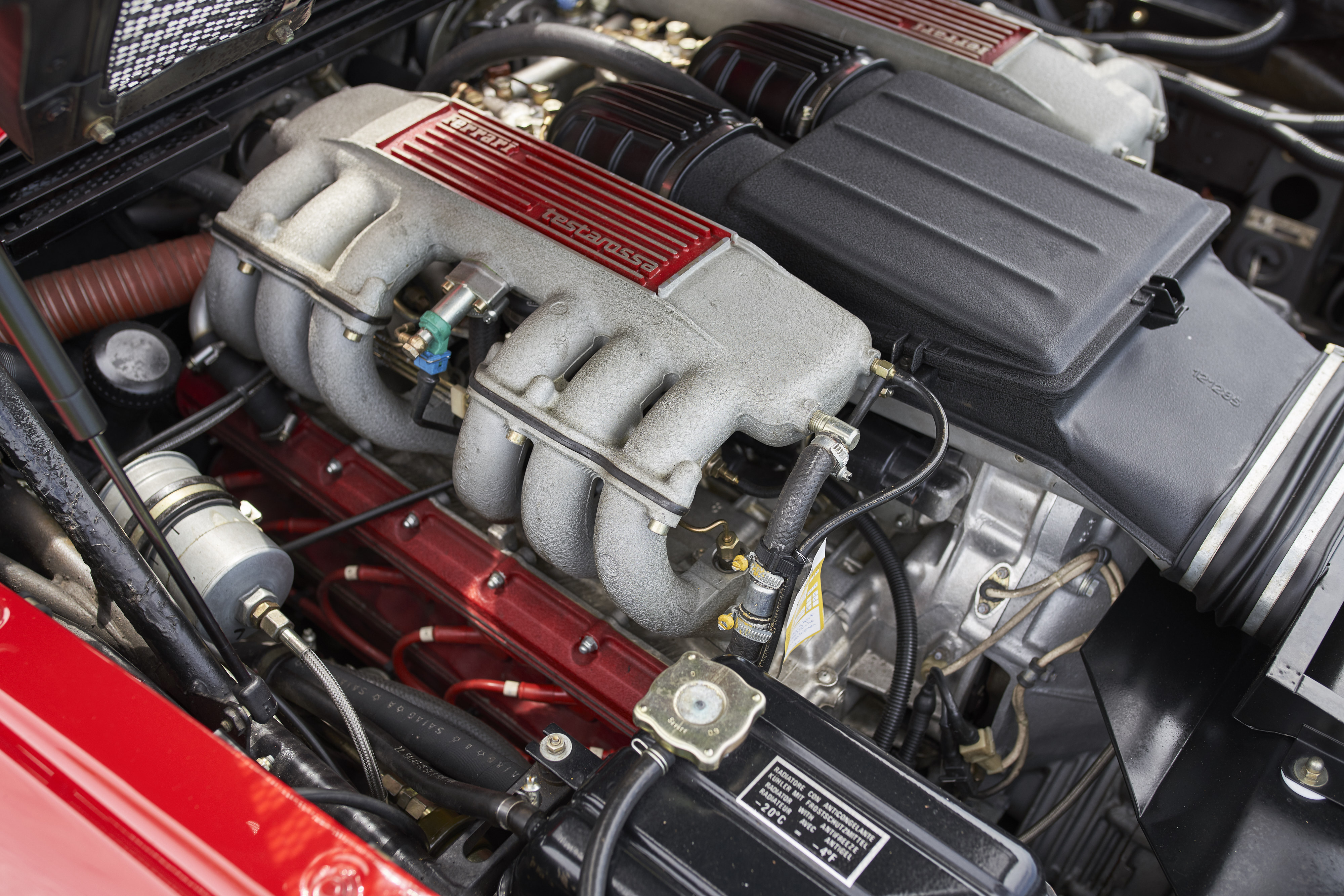 At the Motor Show in Paris in October 1984 the Testarossa, a descendant of the 512 BBi, was presented. Pininfarina's design broke with tradition and at the same time was overwhelming and innovative. The side air intakes were larger than those on the previous model. This led to the introduction of the side planks, which soon became the Testarossa's trademark. The Testarossa's12-cylinder boxer engine was equipped with four valves per cylinder. The dry sump engine was mounted longitudinally and connected to a 5-speed gearbox in a similar way to the previous boxers. The car had an electric Marelli Microplex MED 120 B ignition system and Bosch KE-Jetronic injection to deliver the specified 390 hp at 6,300 rpm. (European models) or the 380 hp at 5,750 rpm. (US models). The model was manufactured, with some small optical changes over seven years, until the end of 1991. When it was replaced by the 512 TR, 7,177 units of the Testarossa were manufactured. The chassis numbers ranged from 53081 to 91923.