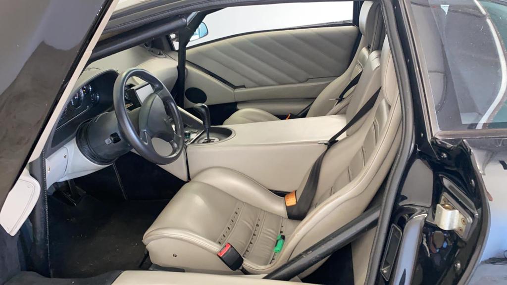 This particular Lamborghini Diablo VT is truly one of a kind. Originally built as a 1994 Diablo VT Coupe, it was delivered with the rare factory Jota Package, making it the only Diablo VT ever produced in this specification. Finished in Nero/Grigio, it came equipped with a factory roll bar, a genuine factory Jota engine cover, a unique front bumper with dual racing tow hooks, and rare carbon fiber engine bay panels — a set of special features that underline its uniqueness.