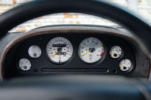 This 1997 Lamborghini Diablo SV in the rare Lambo Thirty met. -Grigio Alcantara colour is one of only 11x Diablo SV ever produced. Delivered new in Germany to Seiku Chirollo on 23th February 1998, the car was shortly thereafter exported to Japan, before being imported back to Germany in 2024 by LEMACC. Upon arrival, the vehicle underwent a comprehensive refurbishment to the highest standards, with a strict focus on originality. The vehicle is very complete with its original tool bags, leather pouch containing all manuals, 2x key-sets as well as the original Alpine TDM-7532R radio and Alpine MRV-F305 amplifier. With just 14,700 km on the odometer, this example is considered among the finest of its series.