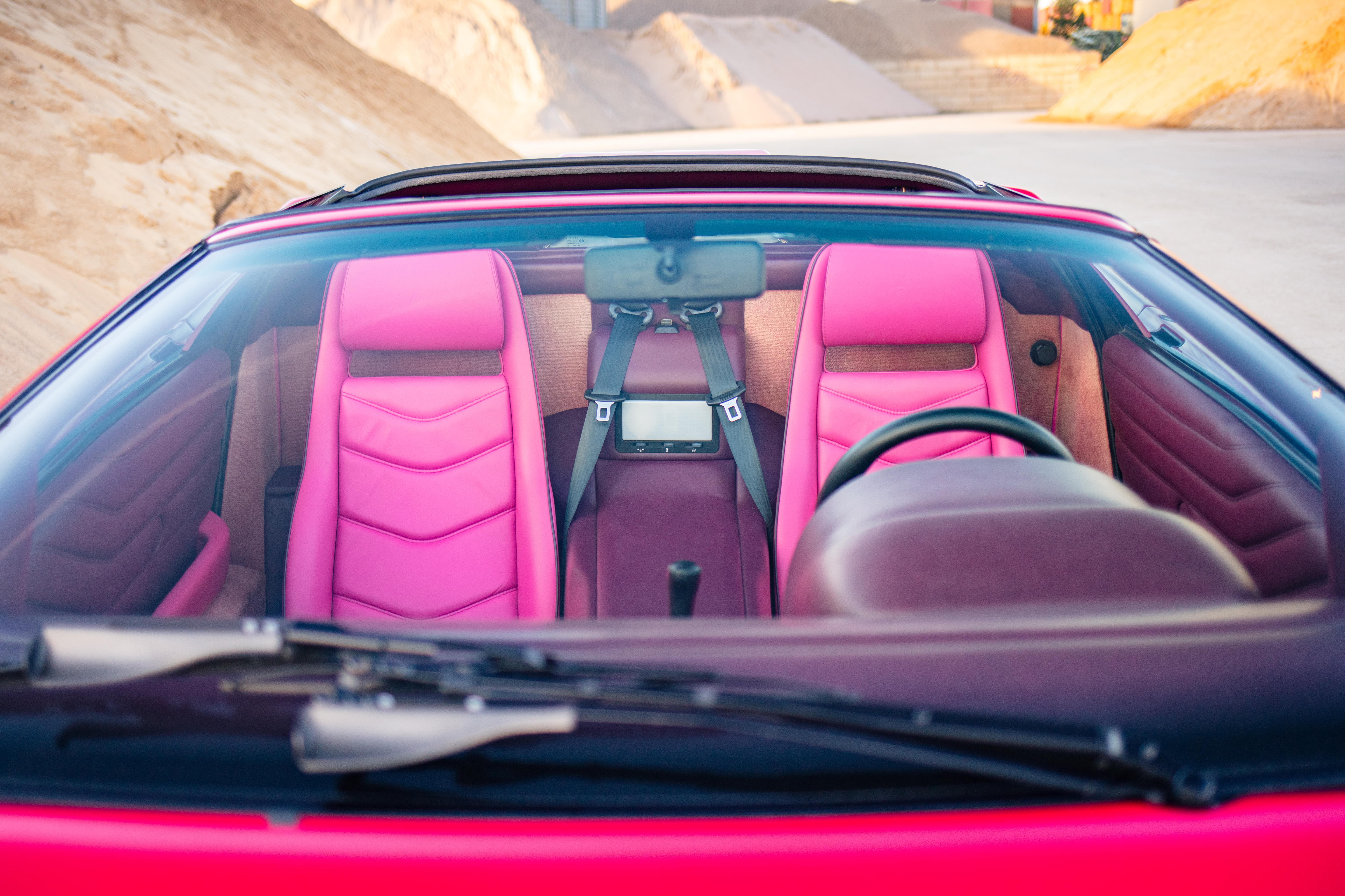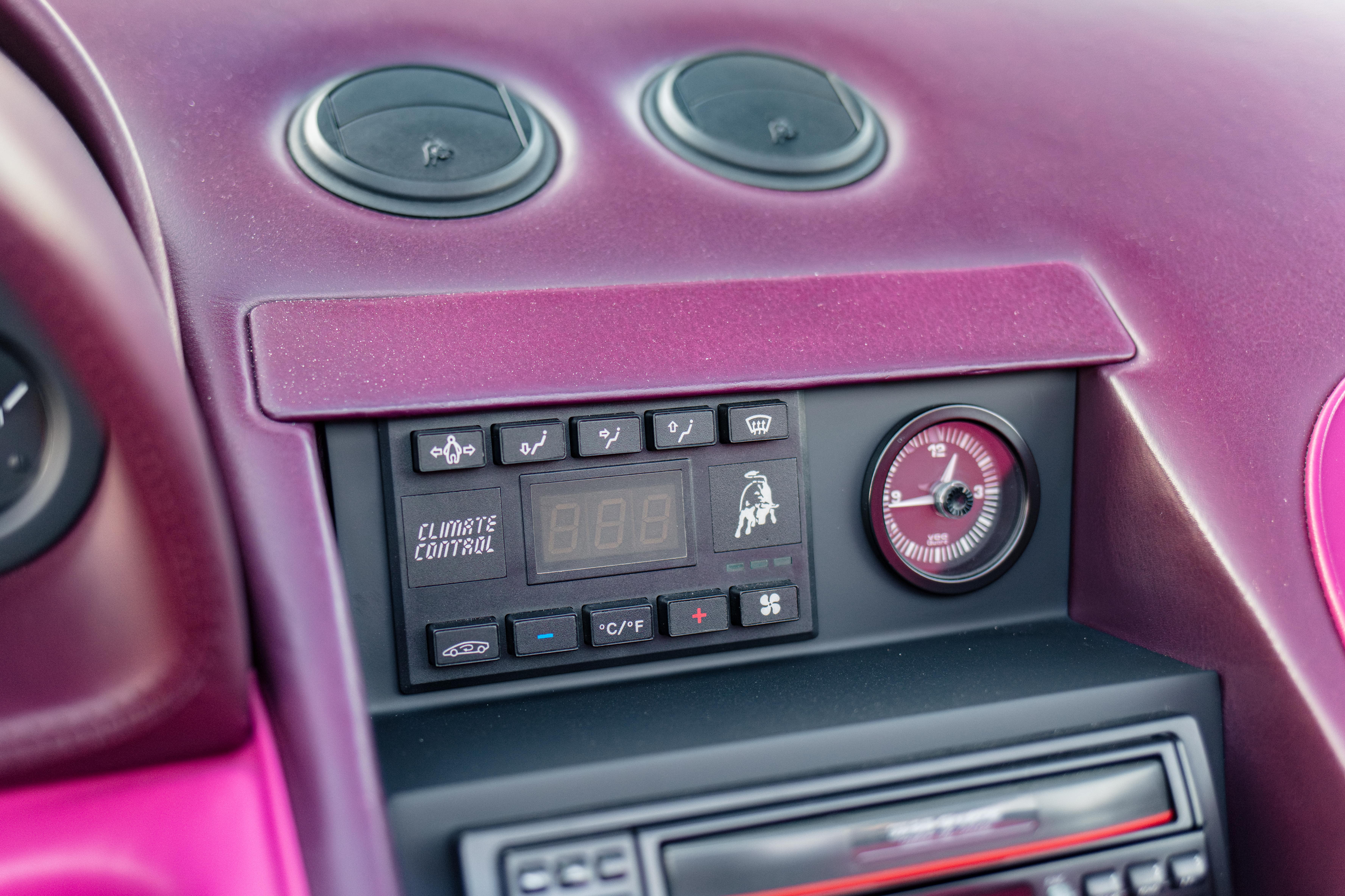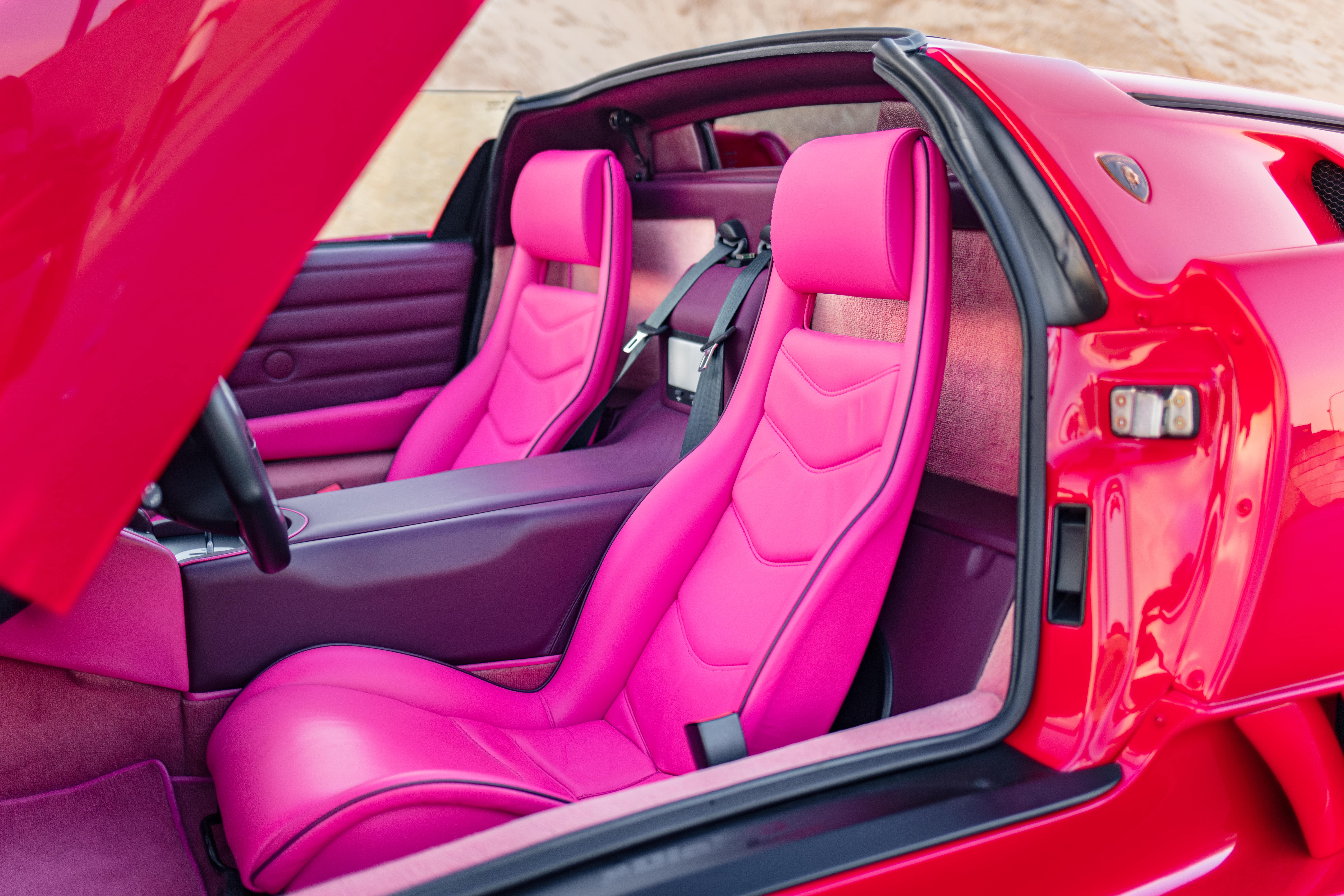 This Lamborghini Diablo VT Roadster features the striking presentation colour combination: exterior in Rosso Targa with a Vinaccia & Fuchsia interior.