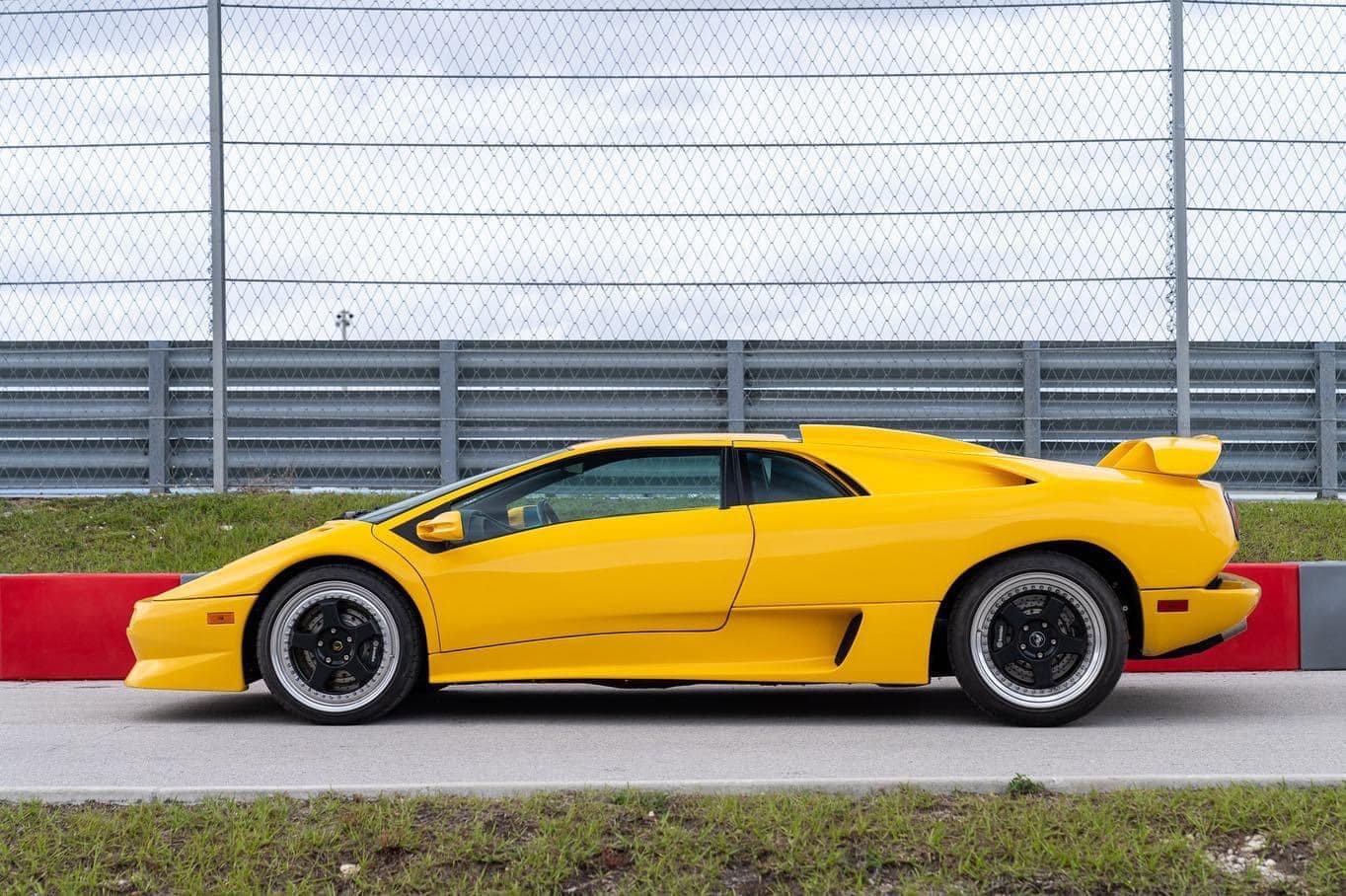 This 1999 Lamborghini Diablo SV *XLA12225* was delivered new in Giallo with black leather interior and yellow contrast piping to Lamborghini Exclusive, USA on 27 July 1999. Its first owner was none other than Mario Andretti, one of the greatest racing drivers of all time and the 1978 Formula 1 World Champion, whose illustrious career also included victories in the Indianapolis 500, the Daytona 500, and the 24 Hours of Le Mans. Today, it remains in a highly original condition with only 9,260 miles from new and is offered very complete, including two sets of keys, both tool kits, the original owner’s pouch with service book and manuals, as well as the original Alpine radio with amplifier and the corresponding manuals. According to Carfax, the car is accident-free and has had only two owners from new. At an undetermined point in time, it was sold and imported to Germany.Overall, this Diablo SV presents in beautiful condition and, with its provenance as a car once owned by a Formula 1 World Champion, represents a truly special example of Lamborghini’s iconic supercar.