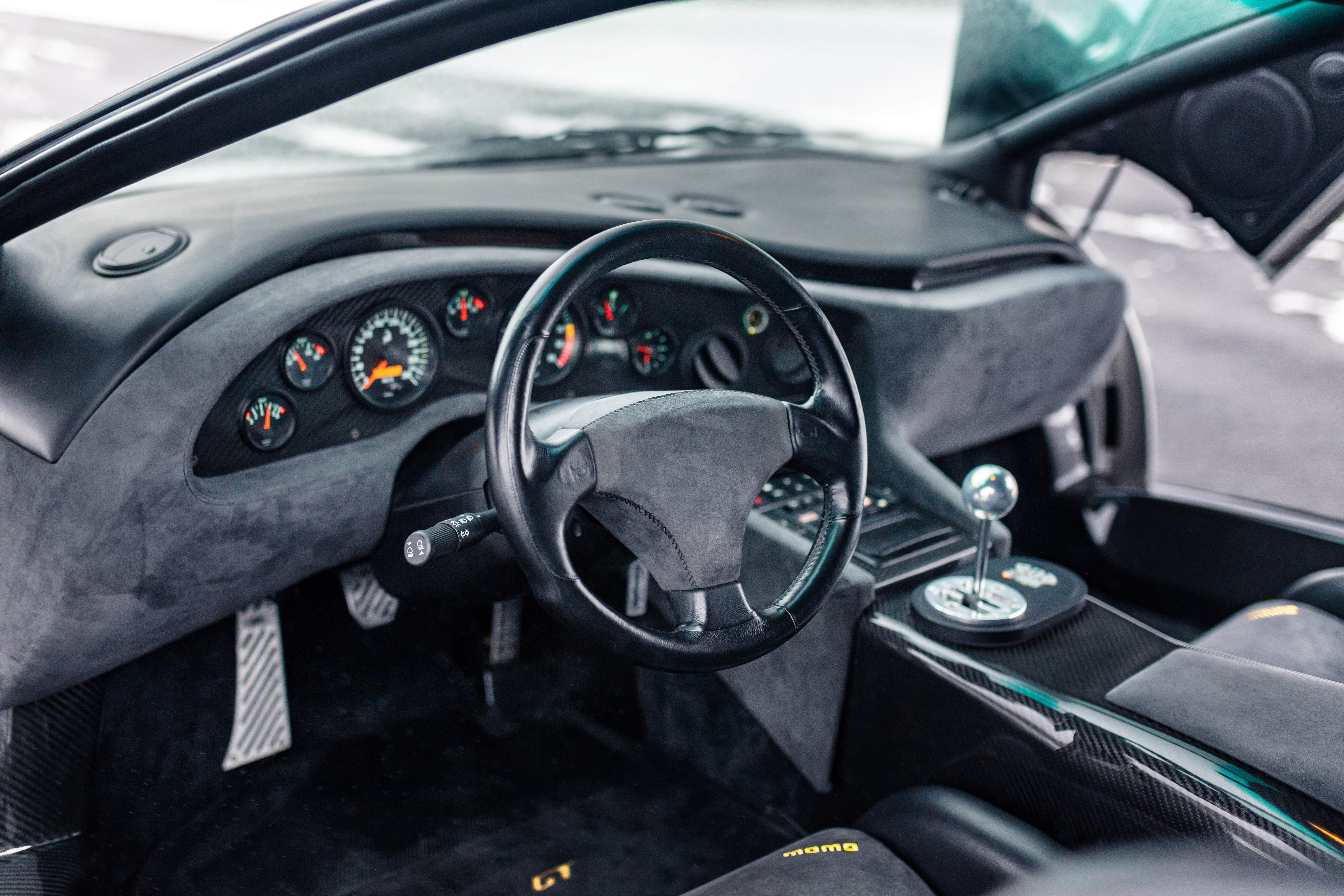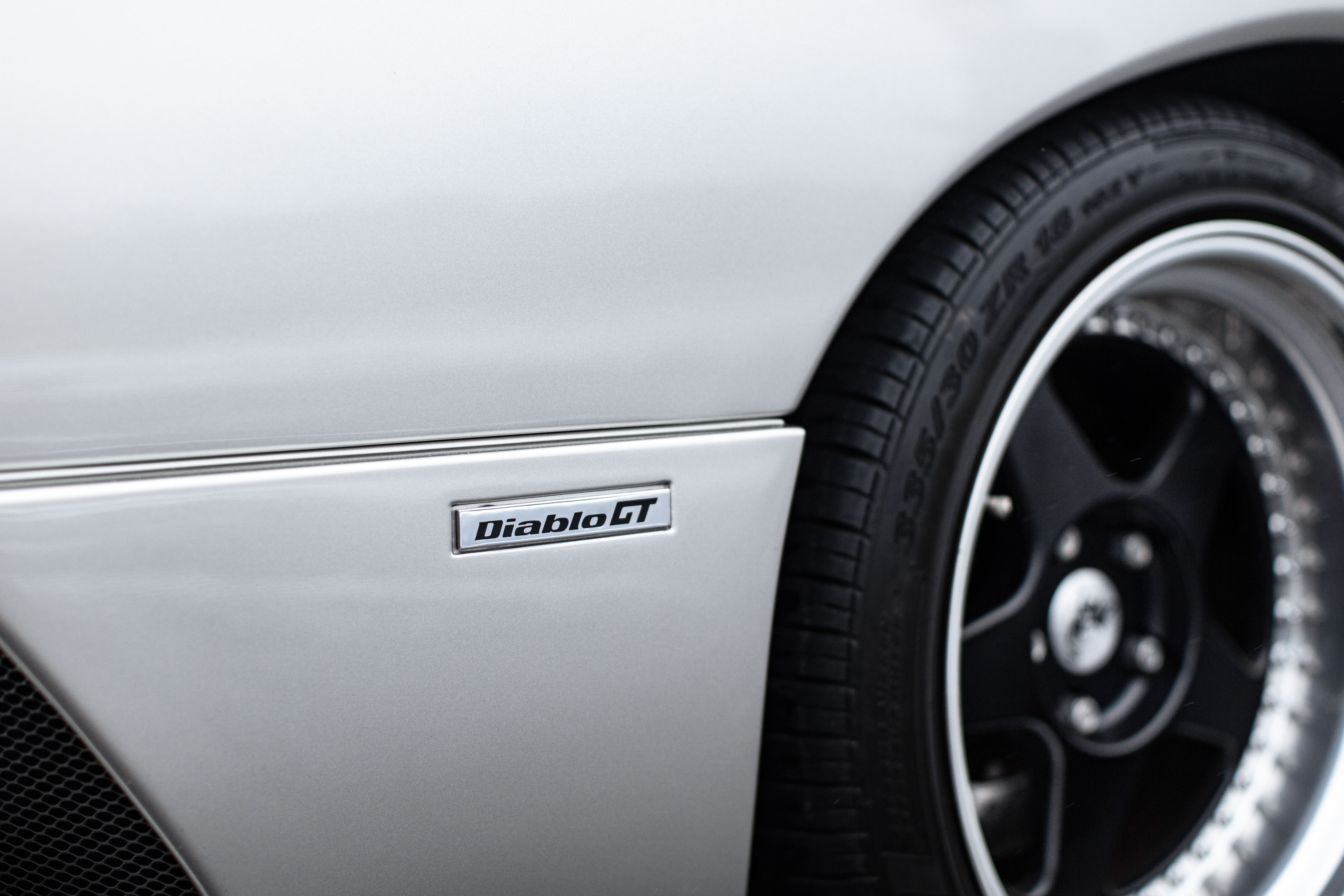 Compared to the standard Diablo models, the GT received a wider front track (+110 mm), a reworked chassis and suspension, significant weight reduction through extensive use of carbon fibre (front and rear bumpers, fenders, bonnets, engine cover), as well as a newly designed interior with racing seats, four-point harnesses, a sport steering wheel, and exposed carbon-fibre details.
