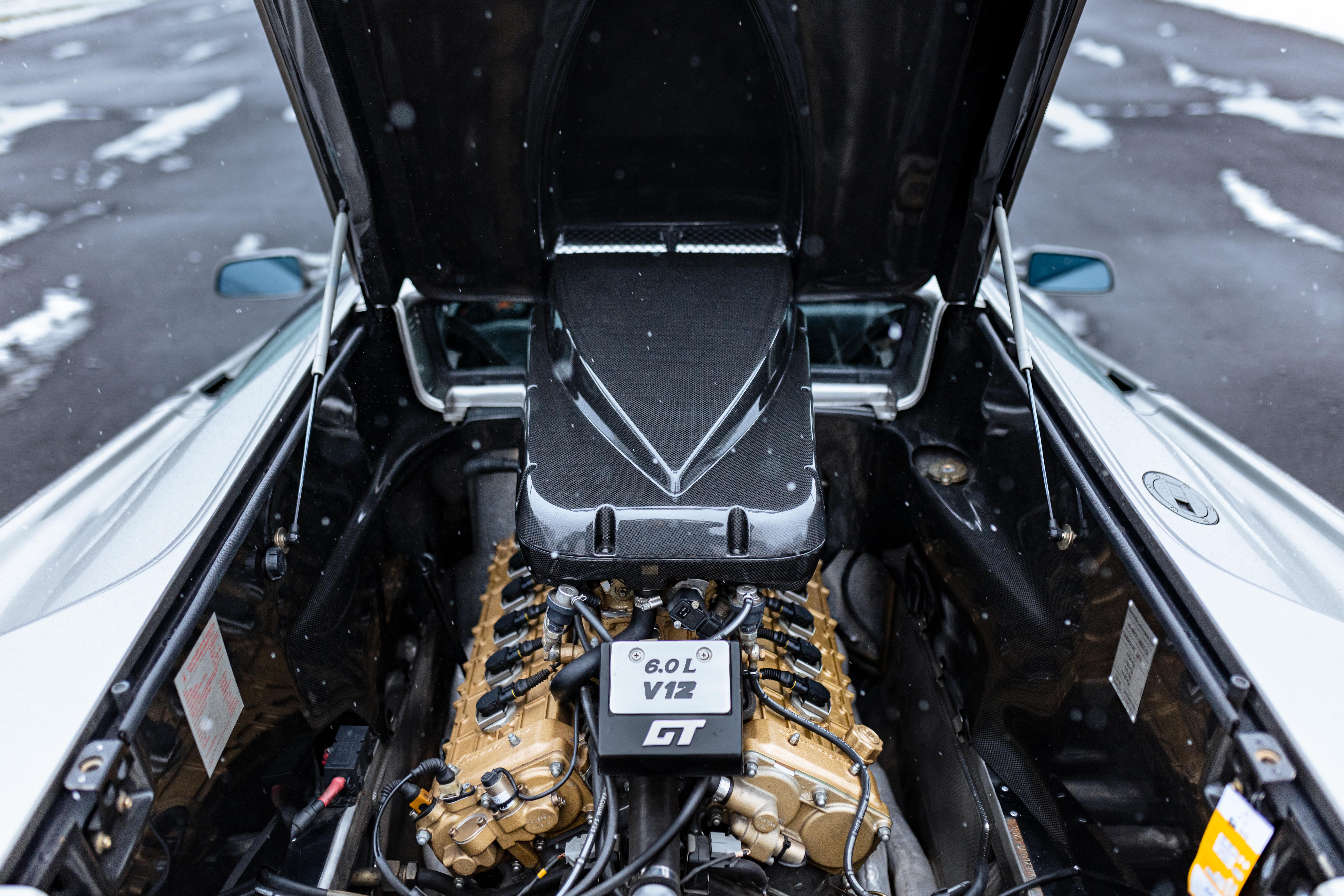 This 2000 Lamborghini Diablo GT (#47) is one of only 80 examples built worldwide and just seven finished in Titanium Metallic 2CT. The interior is trimmed in grey Alcantara with black leather.