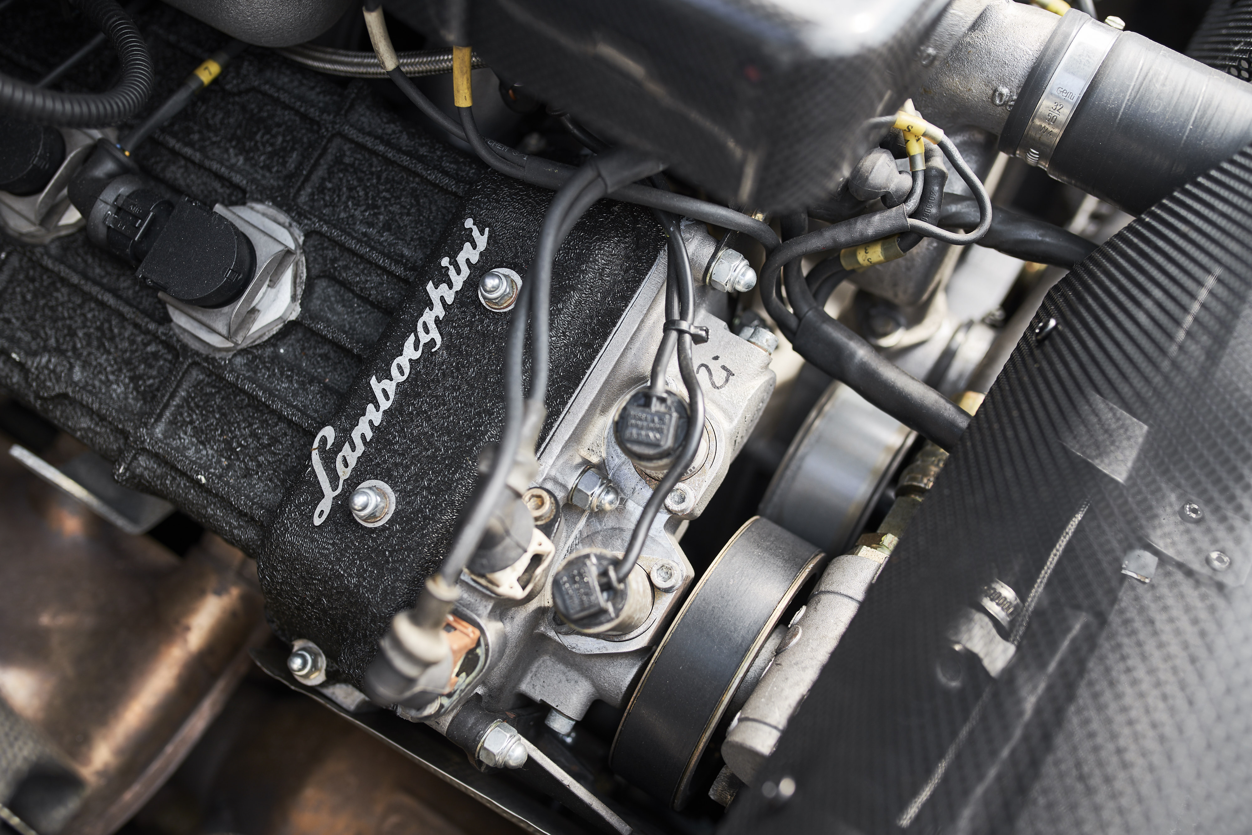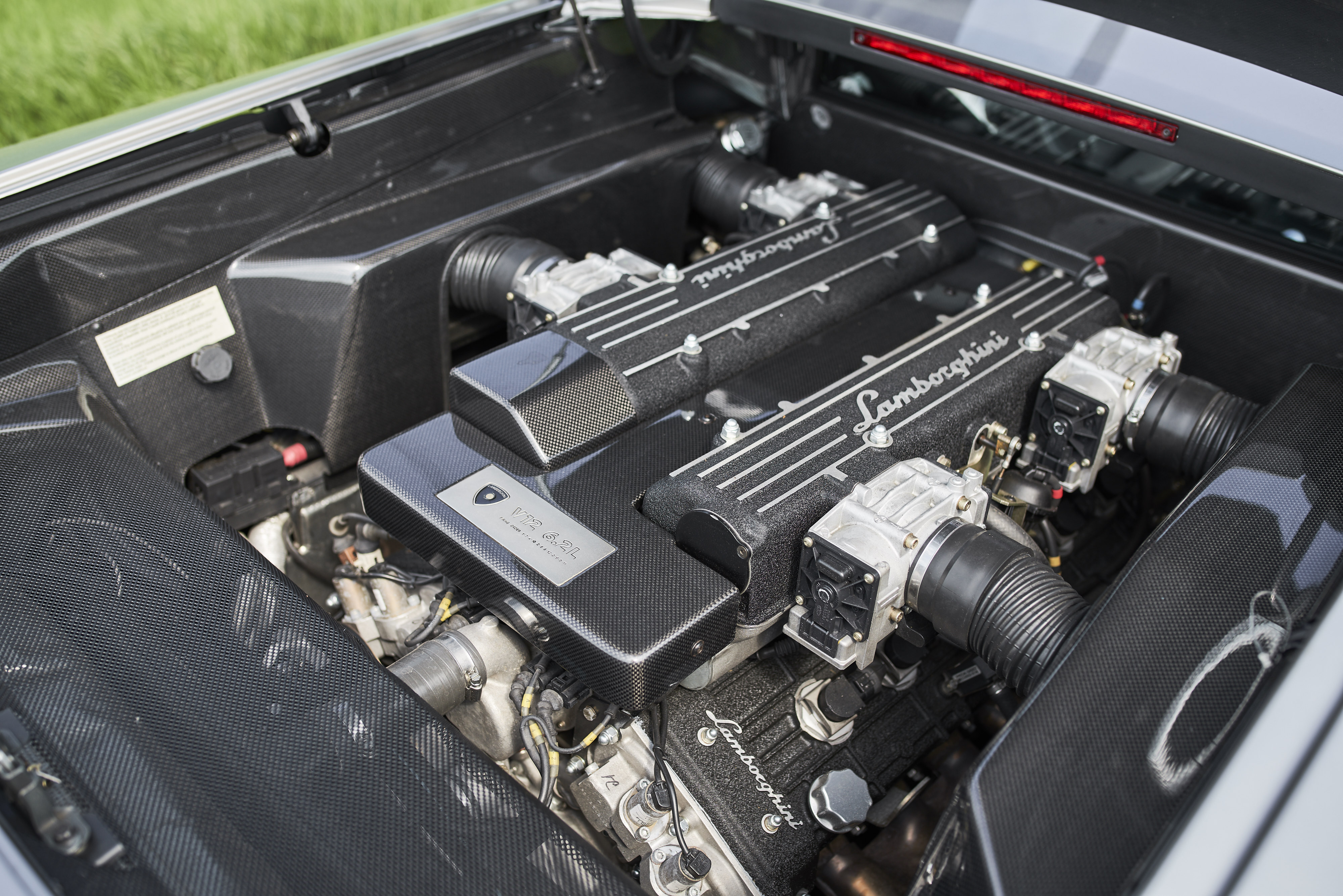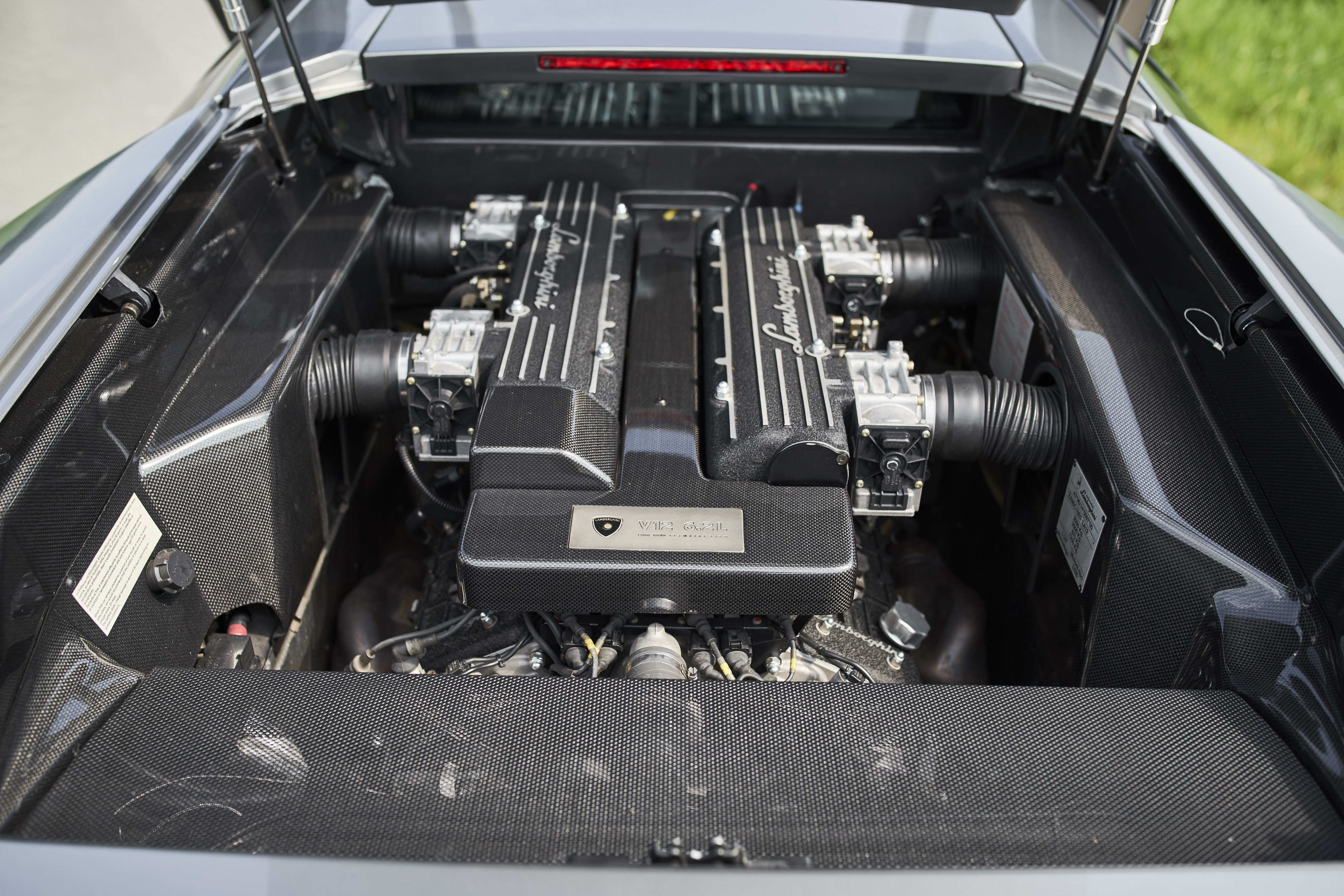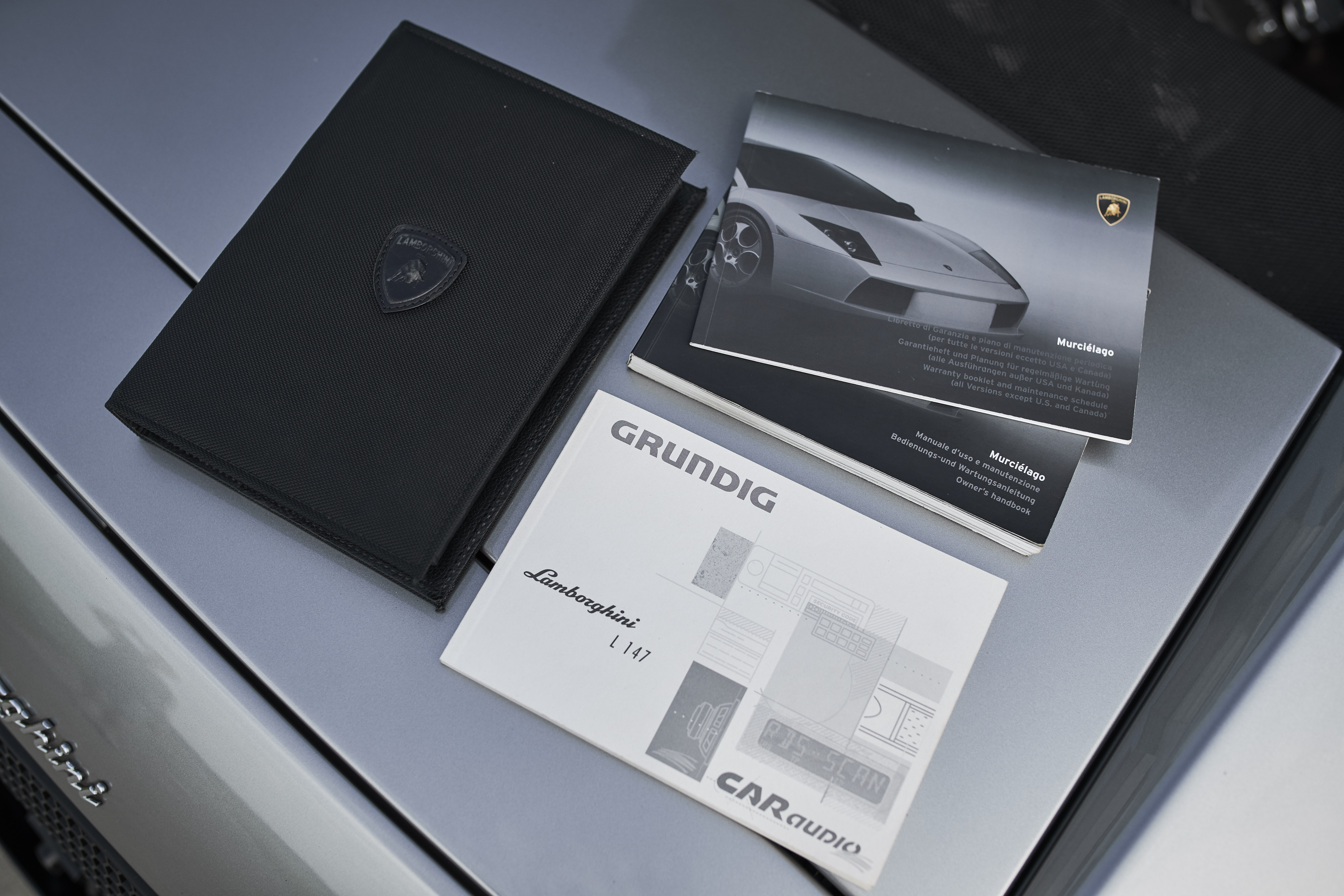 The Lamborghini Murciélago with the chassis number *ZA9BC1DE02LA12327* was delivered on 27.08.2002 by the Auto-Kremer Lamborghini dealership from Bonn / Germany to the first owner from Luxembourg. The colour combination is grigio met. with black leather and grey contrast stitching. Since this is the first series of the Murciélago, the popular 6-speed manual gearbox is installed. In the production year 2002 only 424 units were built. This model is in excellent condition, the paint has only minor defects and the interior is original and in good condition. The vehicle comes from the third owner and has a documented mileage of 91,000km. The service intervals were always carried out by Auto-Kremer Lamborghini and documented in the service book. At the beginning of 2019, extensive work was carried out on the vehicle: Engine removal, clutch including release bearing and pressure plate renewed, valve clearance adjusted, front brakes, tires renewed. The Lamborghini folder with the owner´s manual and service book are of course preserved. In June of this year the car passed the main inspection without any defects. (TÜV until 06/2020) Everything is done on this vehicle, no further investments necessary, get in and have fun!