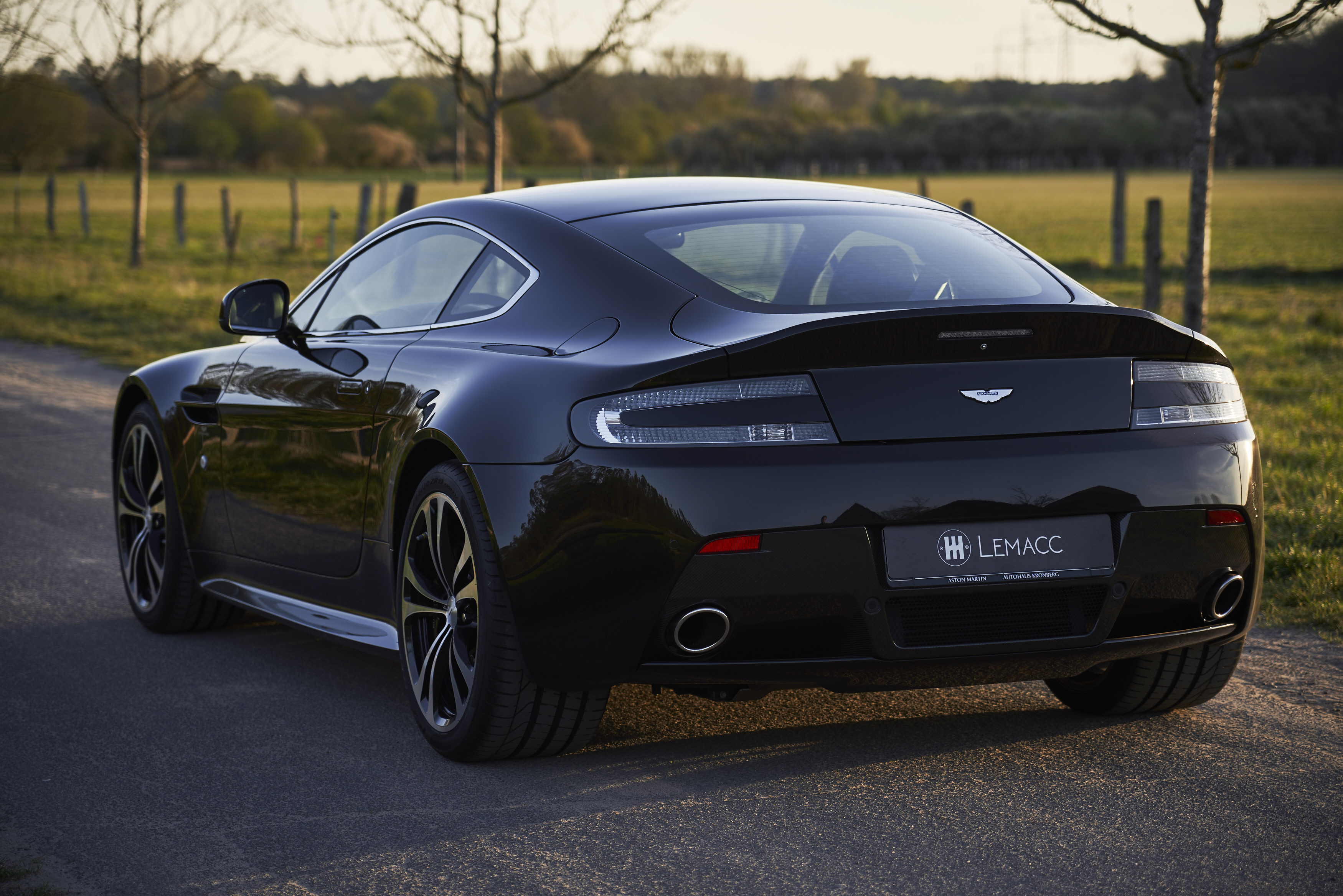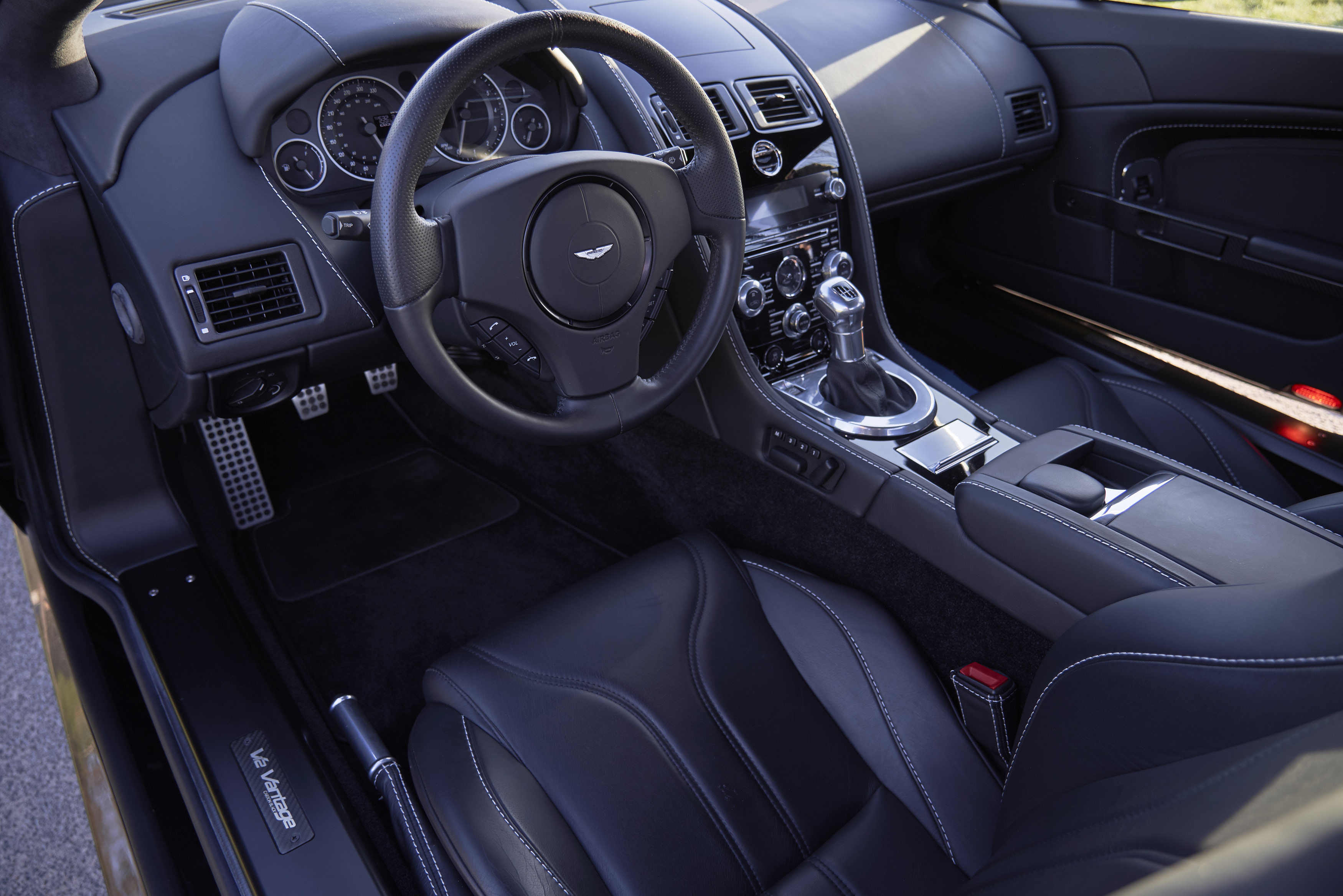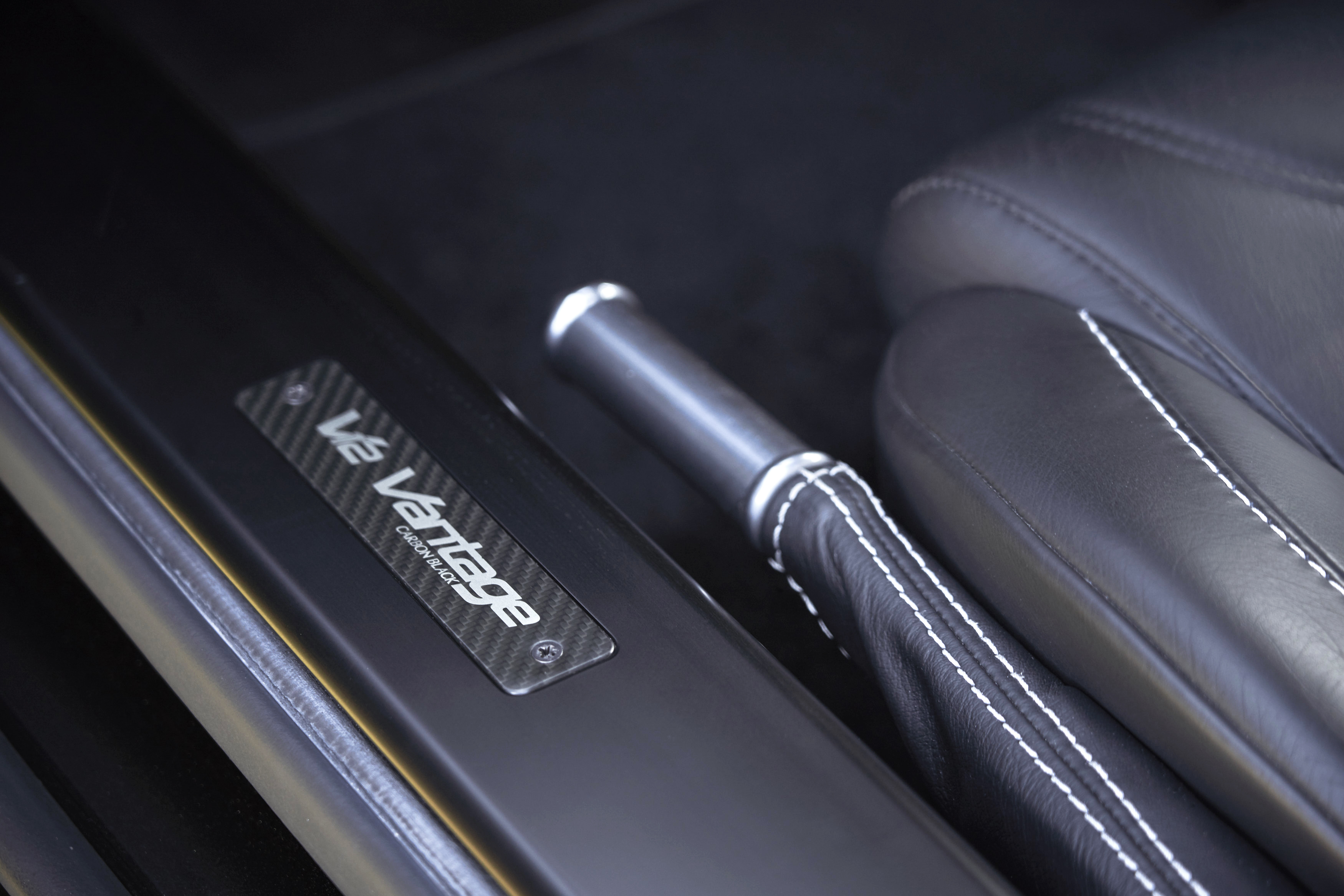 This special model is distinguished by various special applications. Within 50 hours a special blackmetallic paint was applied by hand, which gives the special models their name. In addition, the Special Edition has real carbon fibre trim parts in the side ventilation gills and on the bonnet. To round off theexterior appearance, the Aston Martin stands on diamond-turned 19" ten-spoke aluminium wheelswith black painted interior surfaces. The striking front grille has been polished to a high gloss. The leather upholstery in obsidian black with silver contrast stitching, obsidian black carpets and applications in black piano lacquer looks very noble and clearly enhances the interior. Additionallycarbon parts were used in the interior. Special sports seats with Kevlar seat shells save 17 kg in weight. A Bang& Olufsen sound system completes the overall package. Parking sensors wereintegrated in this special model. The technical difference is that the Carbon Black Special Edition was delivered exclusively with the 6-speed manual transmission. Although it was not a numbered, limited edition, the Carbon Black was limited to only one car per dealer, so they are quite rare. A secondnumbered edition of the Carbon Black V12 Vantage was offered in some markets in 2012.