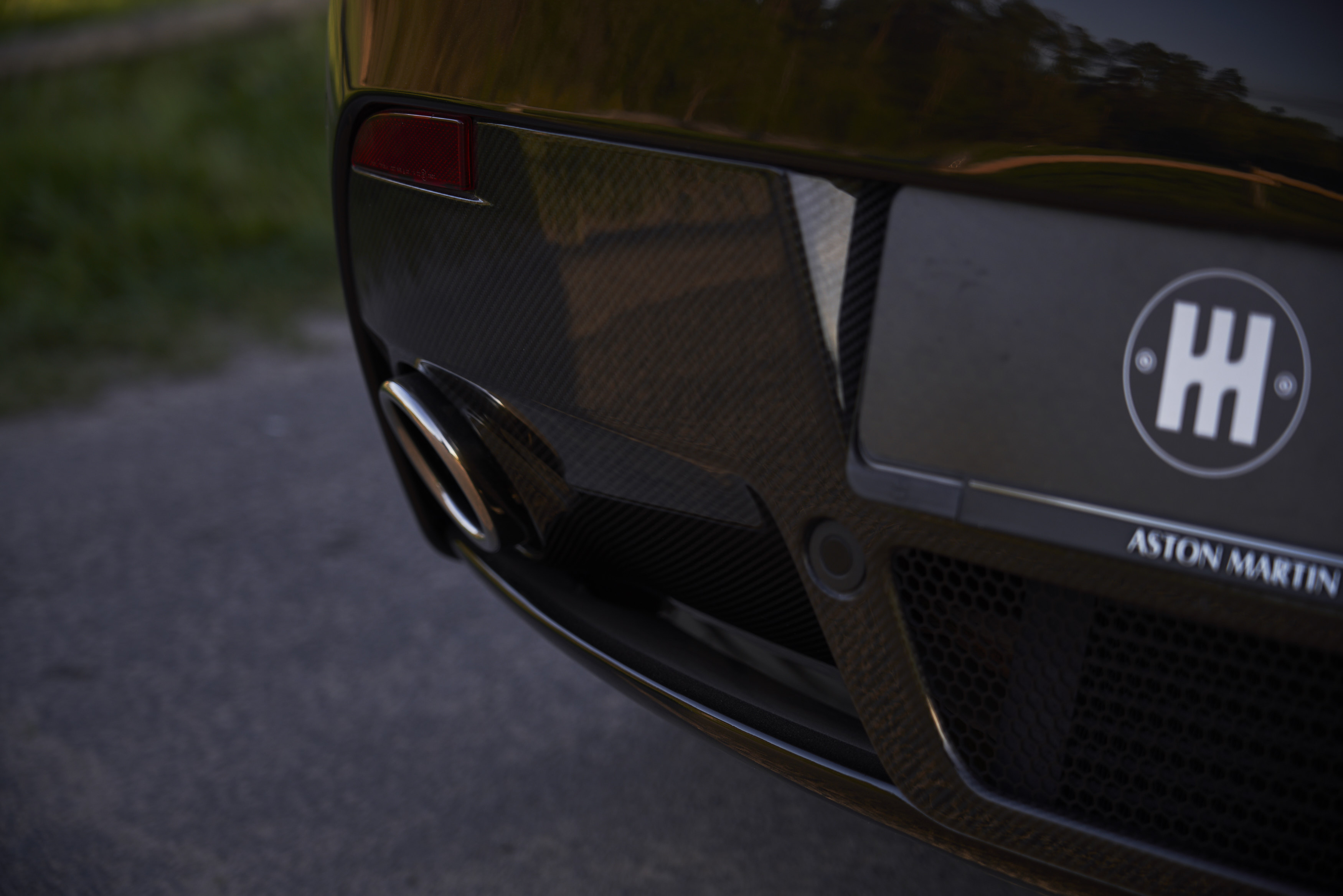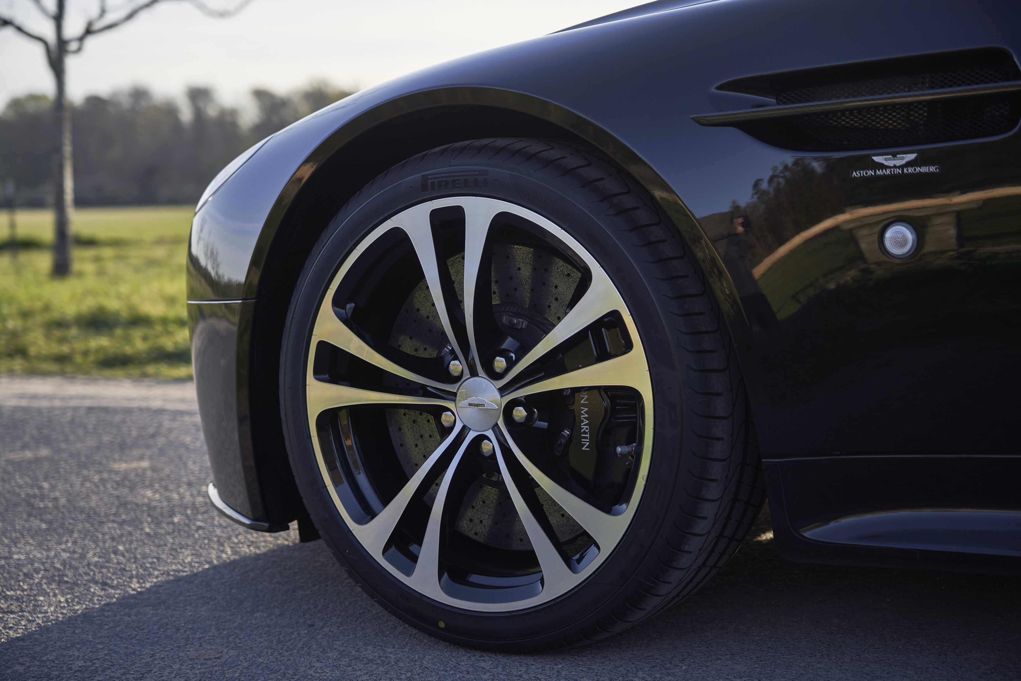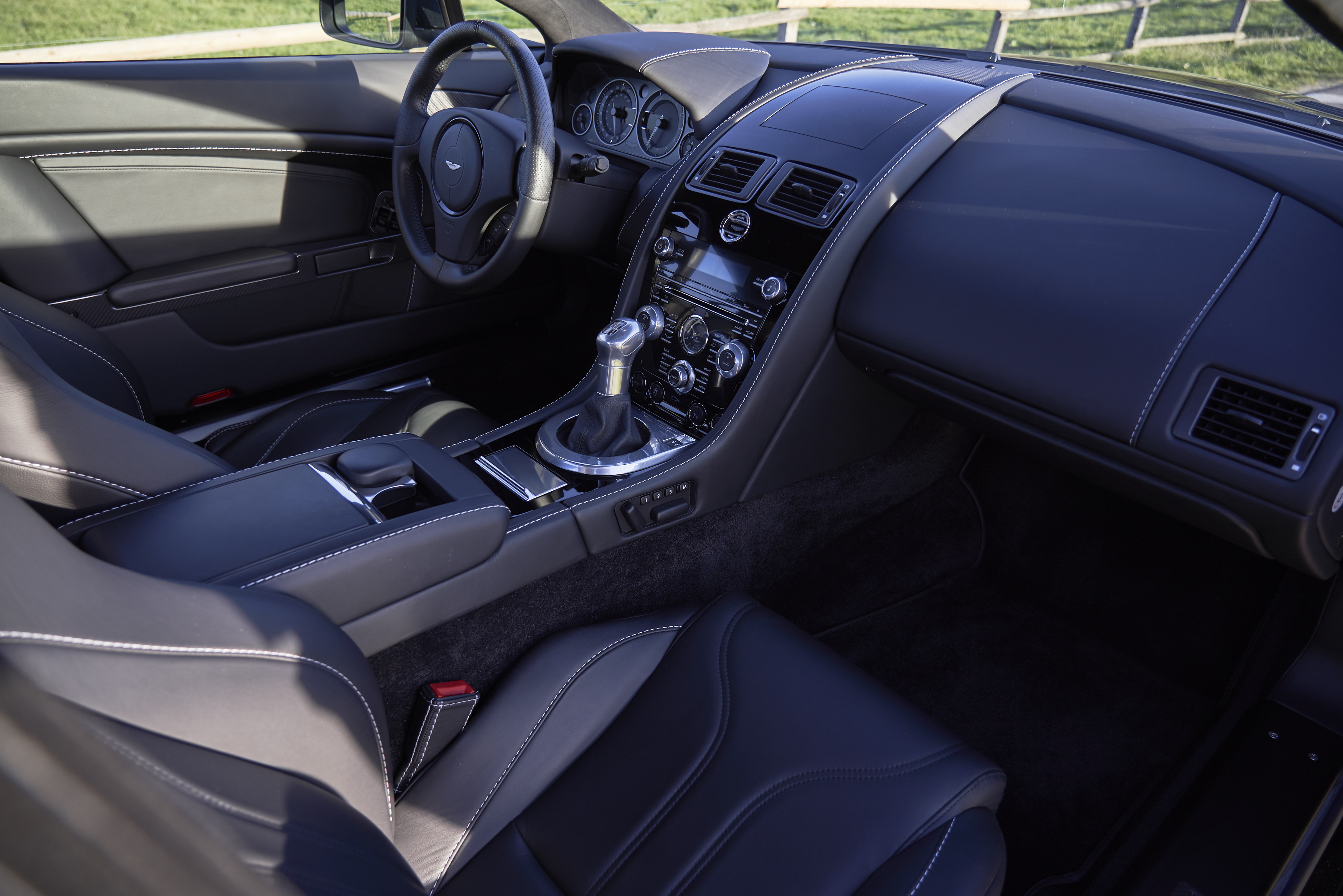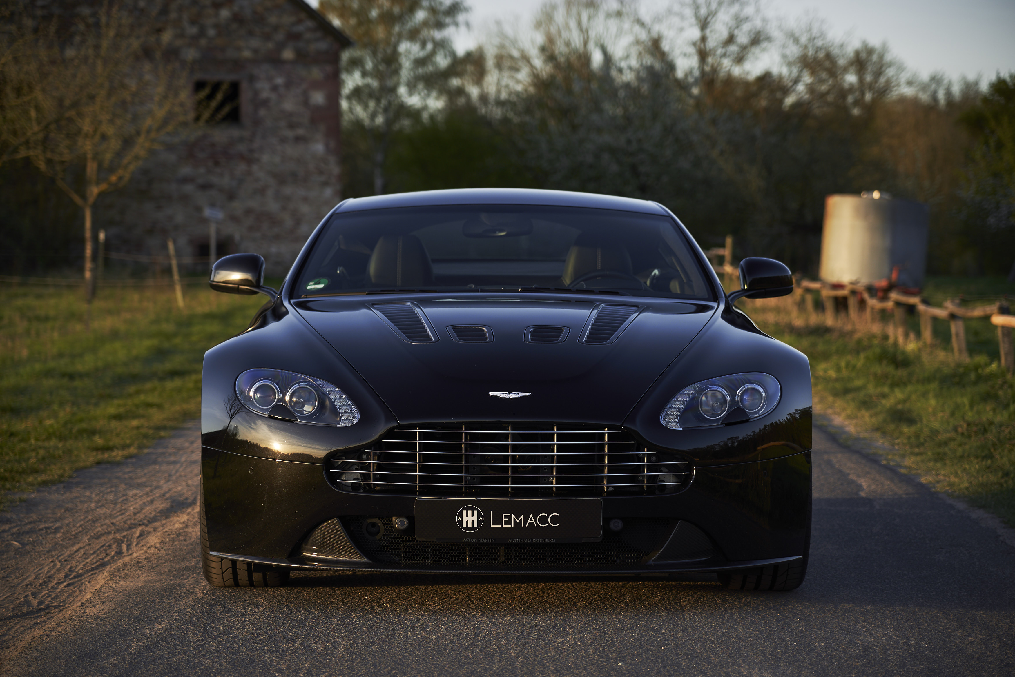 This special model is distinguished by various special applications. Within 50 hours a special blackmetallic paint was applied by hand, which gives the special models their name. In addition, the Special Edition has real carbon fibre trim parts in the side ventilation gills and on the bonnet. To round off theexterior appearance, the Aston Martin stands on diamond-turned 19" ten-spoke aluminium wheelswith black painted interior surfaces. The striking front grille has been polished to a high gloss. The leather upholstery in obsidian black with silver contrast stitching, obsidian black carpets and applications in black piano lacquer looks very noble and clearly enhances the interior. Additionallycarbon parts were used in the interior. Special sports seats with Kevlar seat shells save 17 kg in weight. A Bang& Olufsen sound system completes the overall package. Parking sensors wereintegrated in this special model. The technical difference is that the Carbon Black Special Edition was delivered exclusively with the 6-speed manual transmission. Although it was not a numbered, limited edition, the Carbon Black was limited to only one car per dealer, so they are quite rare. A secondnumbered edition of the Carbon Black V12 Vantage was offered in some markets in 2012.